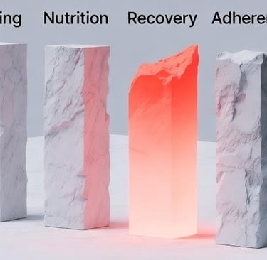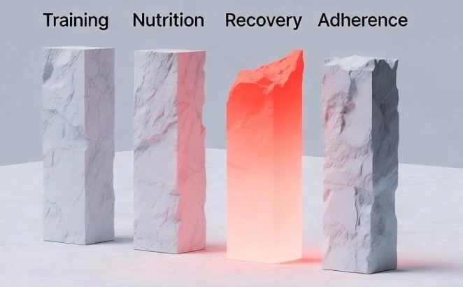 For example, if you tend to jump between workouts or never progress your weights, structure may be your gap. Feeling constantly exhausted or hungry might point to nutrition. Soreness that never goes away could indicate poor recovery. Restarting programs because life keeps getting in the way? That’s an adherence issue.